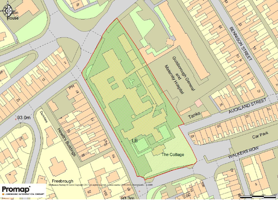 The site is broadly rectangular in shape upon which currently sits part of Guisborough Primary Care Hospital. The property on the site comprises several two storey stone built and red brick buildings including two Grade II Listed buildings. Attached are indicative plans to show how the site could be potentially developed.